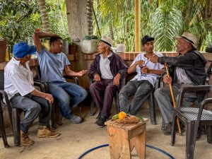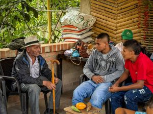 Bajo el nombre ‘El Fogón de la Memoria’, este encuentro buscó integrar generaciones para conversar sobre la vida en el territorio, los cambios a lo largo del tiempo y la importancia de los alimentos como portadores de cultura, identidad y resistencia. El taller inició con una dinámica de integración tipo tingo-tango, donde cada participante compartió lo que sabía de un alimento local —su origen, sus usos, las recetas tradicionales— permitiendo reconocer cómo los mayores han conservado prácticas ancestrales que hoy siguen sosteniendo la vida campesina.